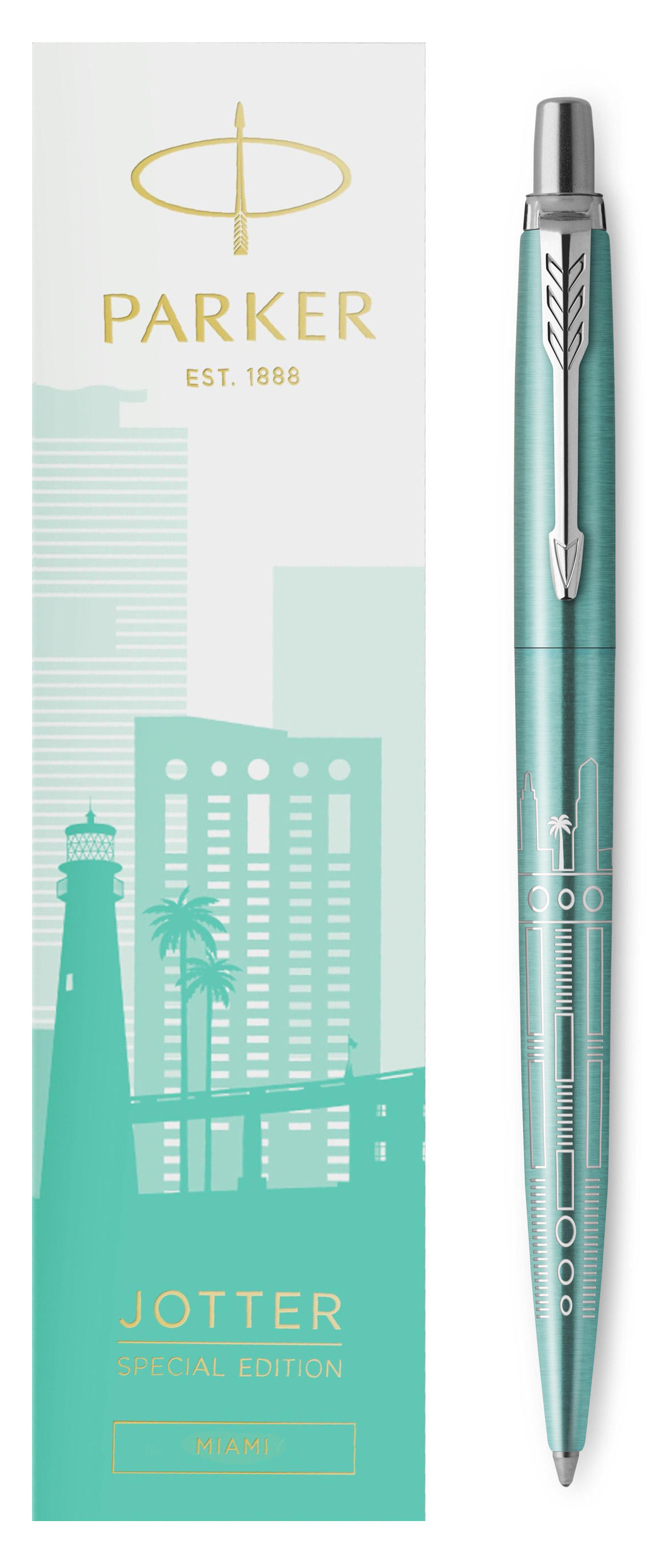 Ручка шариковая Parker Jotter Miami Turquoise CT от официального дилера Parker в Калуге. Вы можете дополнительно заказать гравировку, которая подчеркнет Вашу оригинальность и придаст памятность статусному подарку. Все ручки Паркер поставляются в фирменном футляре.