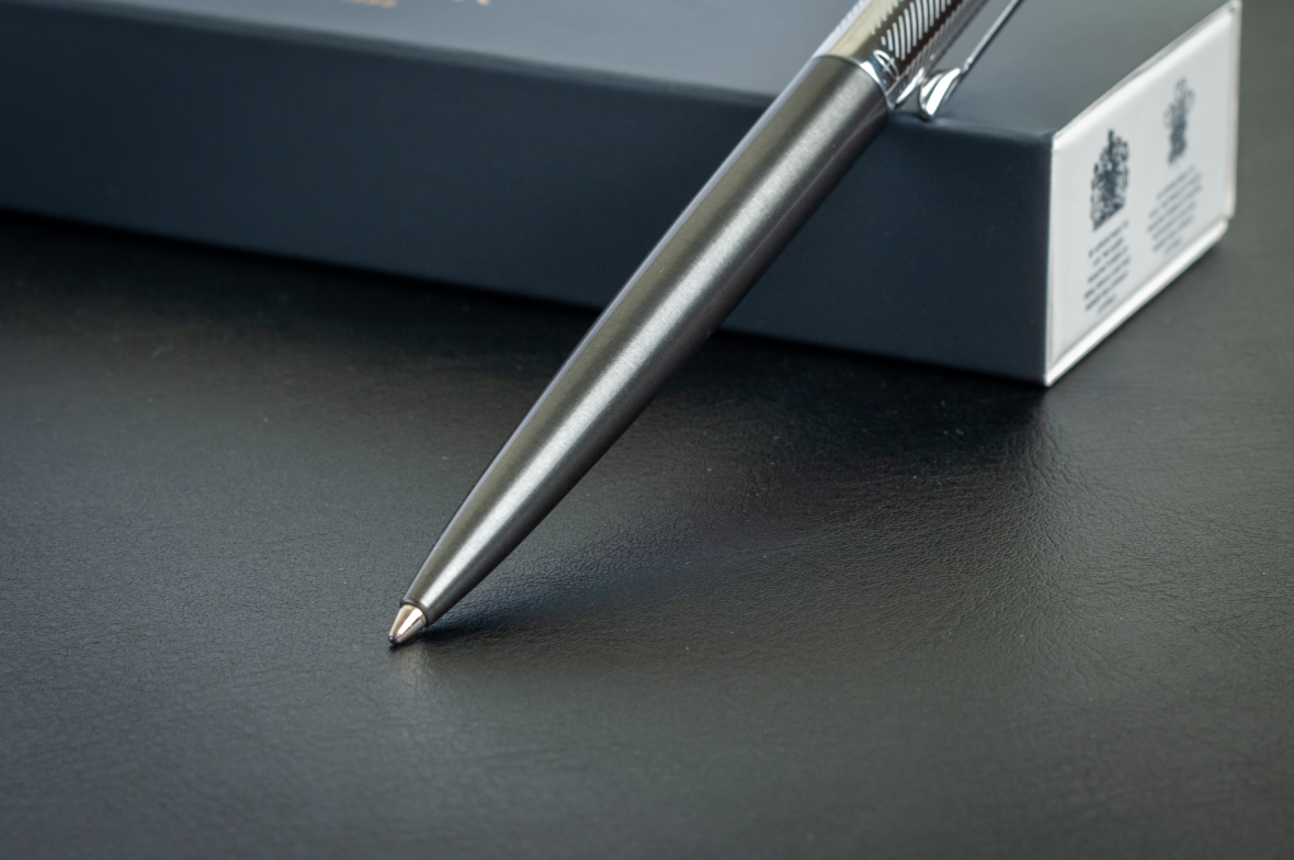 Шариковая ручка Parker Jotter Premium Tower Grey Diagonal CT от официального дилера Parker в Калуге. Вы можете дополнительно заказать гравировку, которая подчеркнет Вашу оригинальность и придаст памятность статусному подарку. Все ручки Паркер поставляются в фирменном футляре.